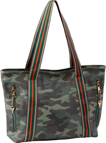 Fashionable camo tote with concealed carry pocket for women on-the-go.