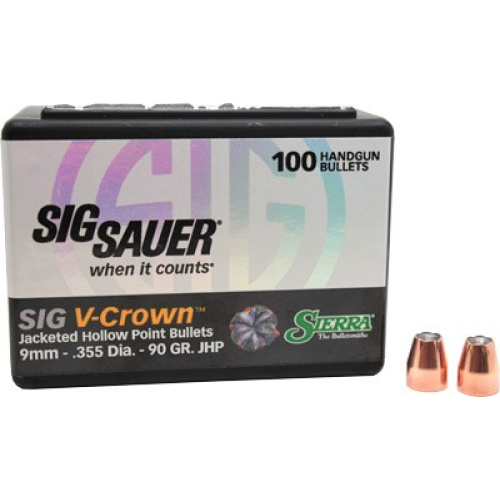 SIERRA BULLETS 9MM .355 90GR JHP SIG V-CROWN 100CT